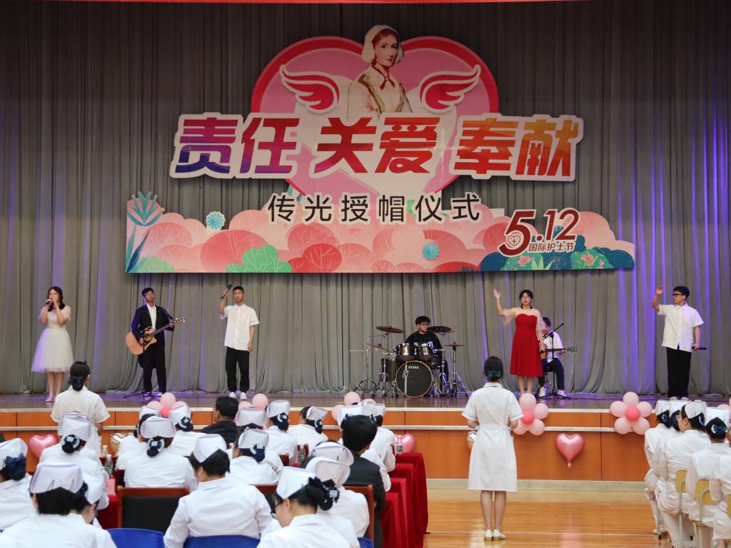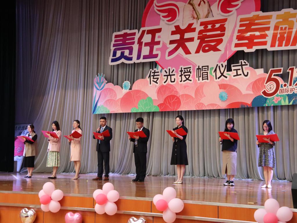 为弘扬南丁格尔精神,激励广大护理师生在新时代、新征程中勇毅前行,在第112个国际护士节即将来临之际,江苏省徐州医药高等职业学校举行2023年国际护士节庆祝大会暨传光授帽仪式。徐州市护理学会理事长夏静、南京医科大学继续教育学院副院长顾平、徐州市第一人民医院护理部主任沈洁、徐州医科大学附属医院护理部主任刘玉平、徐州市第三人民医院护理部主任郭春玲、徐州市中心医院护理部主任陈保云、徐州市中医院护理部主任陈学玲、徐州矿务集团总医院护理部主任宋红、徐州市妇幼保健院护理部主任彭燕、徐州市儿童医院护理部主任张春侠、徐州市东方人民医院护理部主任李莹、徐州市新健康老年病医院护理部主任张永梅、徐州市贾汪区人民医院副院长黄世芳等护理前辈,江苏省徐州医药高等职业学校校长杜庆、校党委书记高侠、副校长陈志东、副校长佟光进及学校护理系全体师生参加了此次活动。
