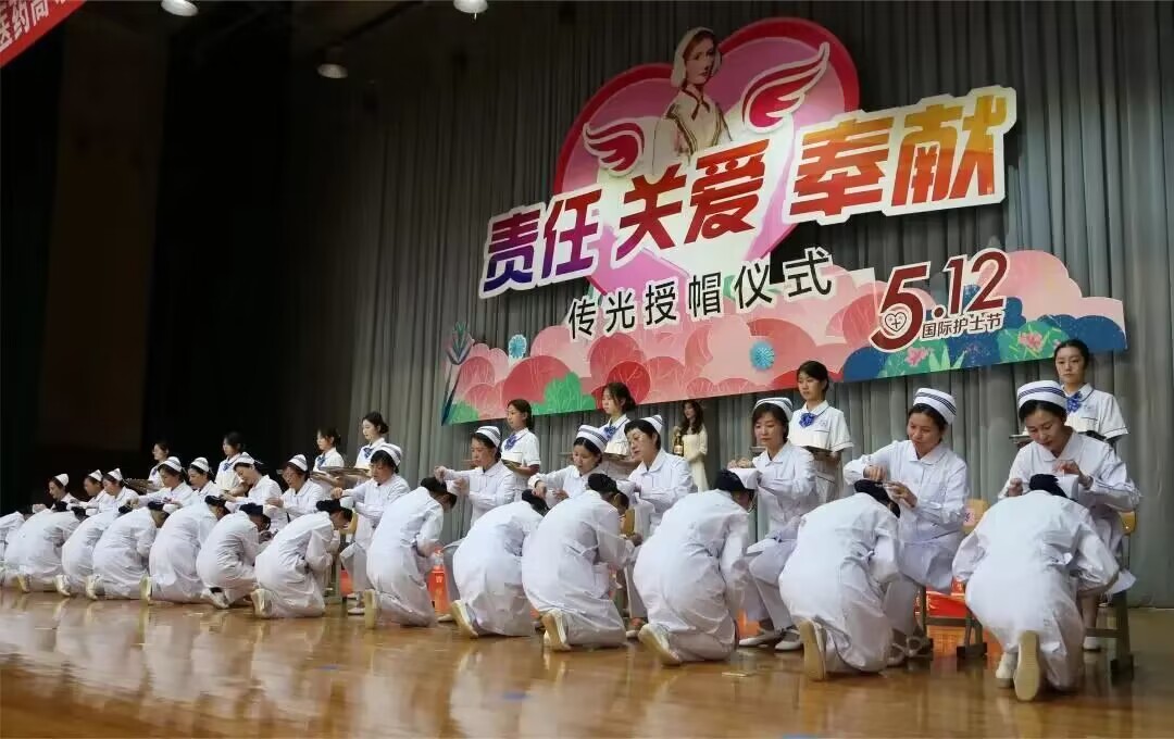 活动中,杜庆向长期关心、支持学校护理专业发展的专家前辈同仁表示感谢,向辛勤耕耘在护理教育一线的教师和全体医护专业的白衣天使们致以节日的问候和崇高的敬意。他亲切叮嘱全体护生珍惜在校的学习时光,夯实理论基础、精进护理技能、践行匠心精神、厚植济世情怀,为临床实习做好充分的准备。“戴上燕尾帽就意味着从前辈手中接过了接力棒,希望广大护理学子坚守诺言、尊重生命、保障健康,用无私的志气、底气和正气守护崇高的护理事业,用实际行动为人民健康保驾护航。”