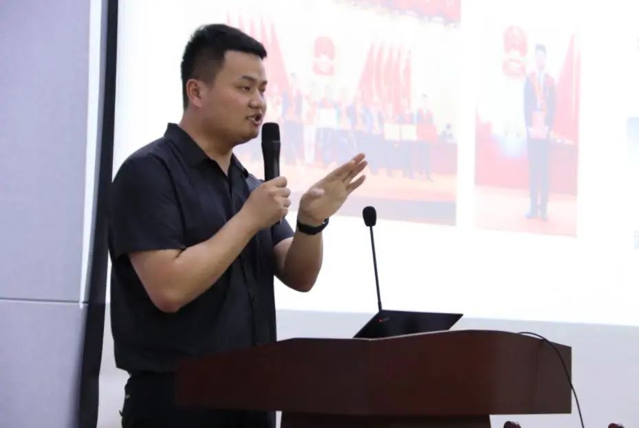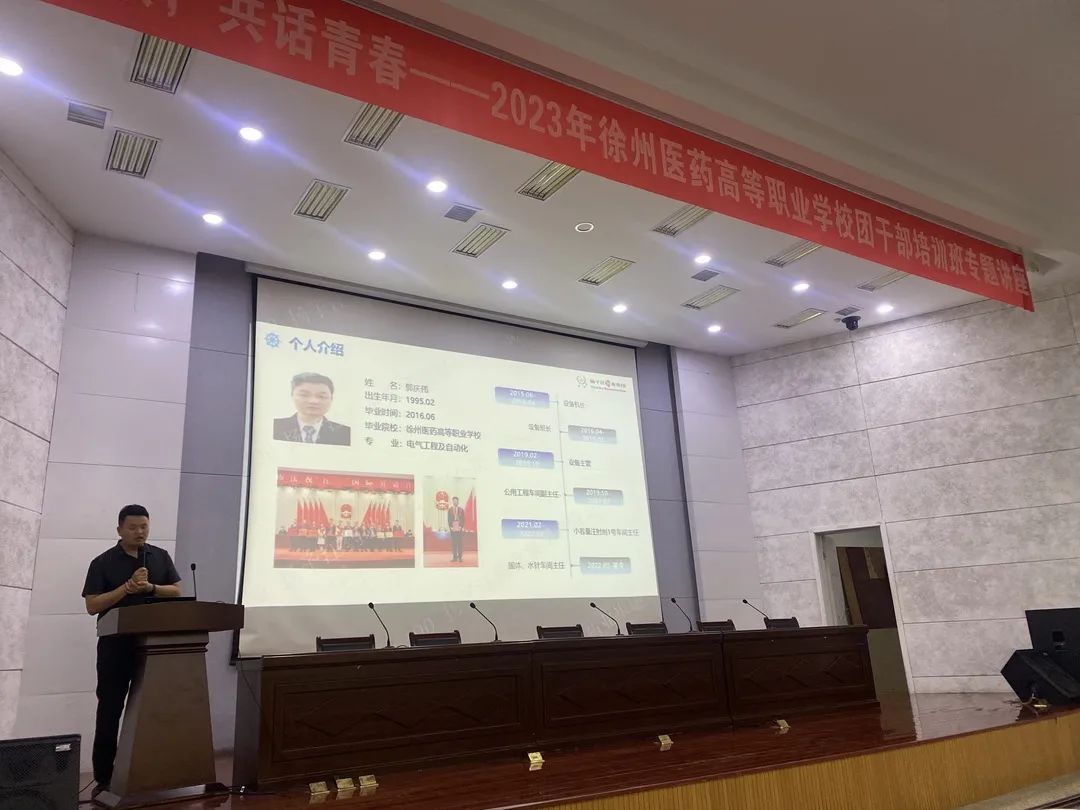 校友郭庆伟用一张张照片讲述了担任学生会副主席期间参加省运会、徐马、艺术节、迎新晚会等活动的难忘回忆,并结合自身工作,重点分享了他就职扬子江药业集团江苏紫龙药业有限公司以来,从一名基层员工到最年轻的车间主任,从一名初入职场的职校生到荣获全国五一劳动奖章的经验心得。他表示,正是因为母校的培养,才有了他今日取得的成绩,希望学弟学妹能始终牢记“厚德博学,强能济世”校训,圆梦职教,追梦青春,他也将和大家一样,继续砥砺奋斗,为母校增添更大荣光。