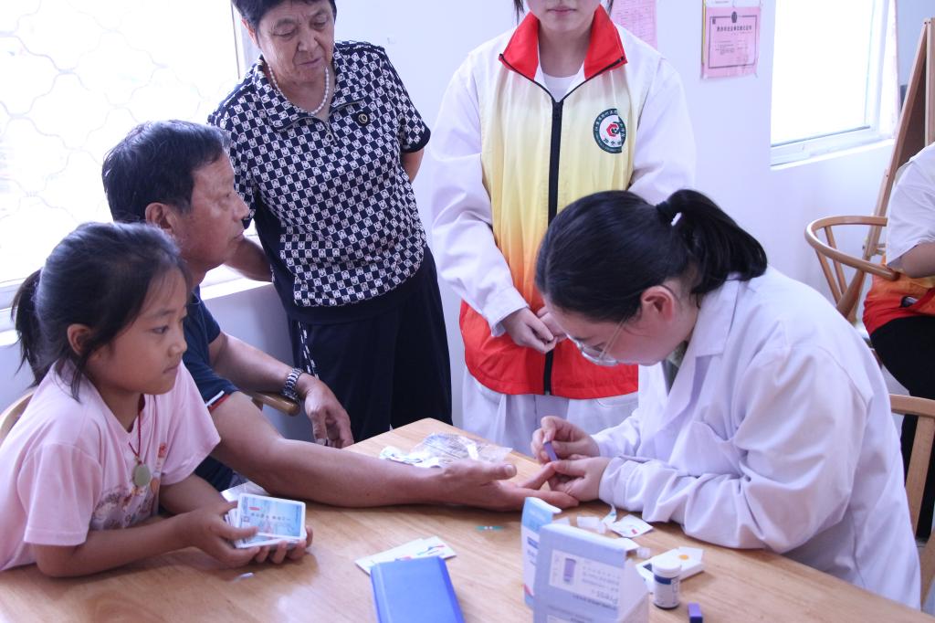 活动前,实践团做了充分筹备,制作了安全用药宣传手册和宣传海报,对活动内容进行了精心策划。活动中,在冯金老师的指导下,实践团的部分成员在翟山村服务中心为居民进行了血压、血糖测量和耳穴埋籽项目体验,并详细就安全合理用药知识进行了科普。为了更加广泛深入的做好安全用药宣传,另一部分团队成员不顾夏热的炎热,走进翟山村的街边巷口,一对一交流了解居民日常用药观念、用药习惯,比如药物储存、过期药品处理、多种药物服用等等团队成员利用制作好的宣传手册向居民们讲解了滥用药物的危害性,对安全用药知识进行了科普。此次志愿服务活动内容丰富且贴近百姓所需,真正把健康医疗服务和安全用药知识送到群众身边,获得了现场民众的一致好评。
