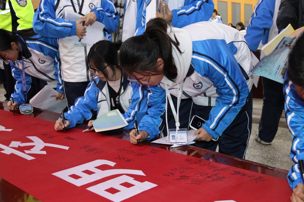 活动最后,同学们在宣传横幅上签下了自己的名字,大家纷纷表示会将这份承诺传递给身边的人,用自身实际行动影响带动家人、朋友,共同维护创设良好的道路交通安全环境。