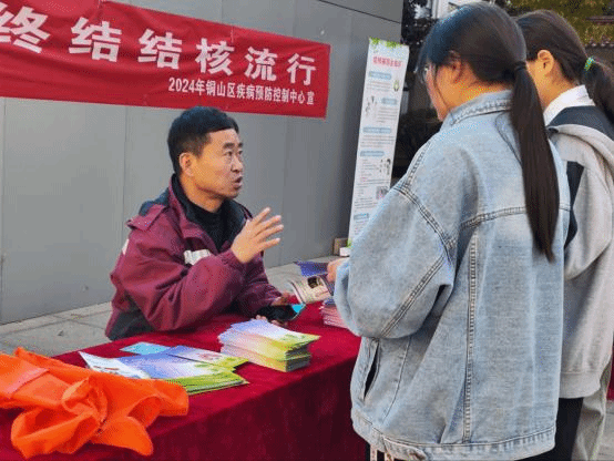 2024年3月24日是第29个世界防治结核病日,今年我国的宣传主题是“你我共同努力,终结结核流行”。旨在倡导全社会关注结核病防治,不断增强健康意识,共同终结结核流行。为做好今年防治结核病日宣传活动,总务处联合学工处于2024年3月20日邀请铜山区疾病预防控制中心进校进行一系列宣传活动。
