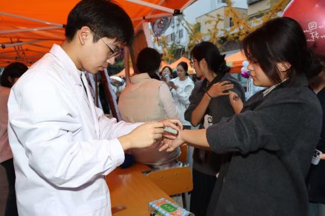 社团招新,各展特色亮点。不仅台上演出精彩纷呈,台下各个社团的招新活动也在有条不絮地进行着。两个校区共有50余个协会参加本次社团文化节,各学生社团发挥特色,在展位精心设计趣味性、参与性、教育性兼顾的文化技能体验活动,同学们通过参与展位活动,加入心仪的社团。