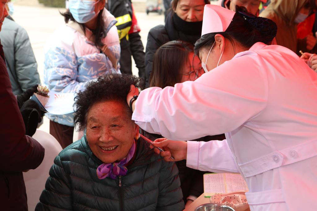 活动现场,热闹非凡。师生们充分发挥自身专业特长,为社区居民提供了丰富多样的服务。量血压区域,师生们耐心细致地为每一位居民测量血压,为居民们讲解高血压的预防和控制知识;耳穴埋籽区域,师生们通过在耳穴处贴压药豆,帮助居民缓解疼痛、调理身体,这种简便有效的中医技术让大家领略到中医药文化魅力;漆扇体验区域同样人气高涨,在制作过程中,居民相互交流,分享漂漆技巧和经验,也对非遗传承技艺有了更加深入的了解。一系列贴心服务,收获了社区居民的一致好评。