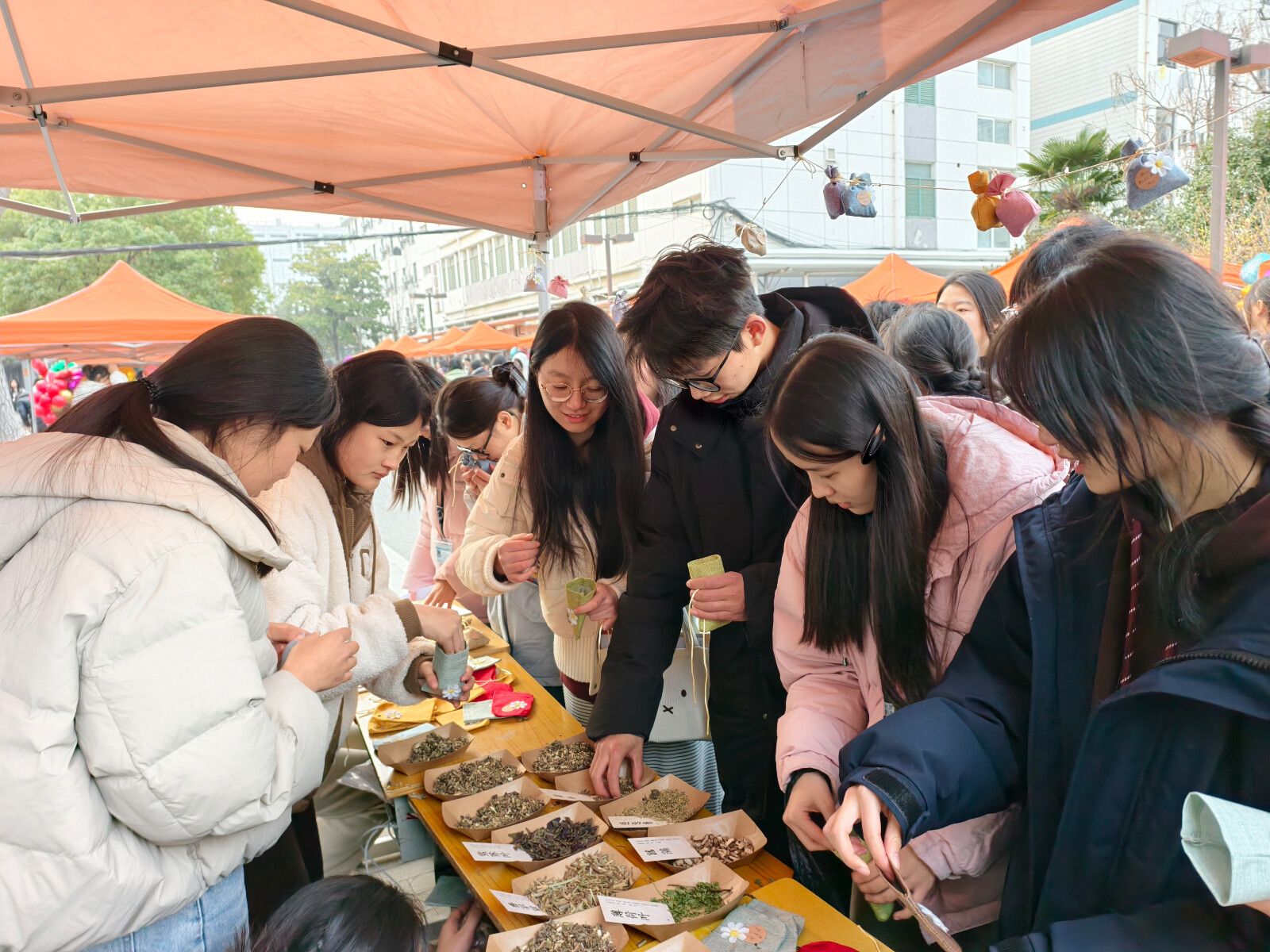 非遗雅韵润心田,巧手传情藏福意。优秀传统文化体验区处处流淌着中华文脉的醇厚魅力。书法爱好者凝神挥毫、落笔生花,一幅幅笔墨飘香的春联将祝福藏于笔端、漫于校园;脸谱绘制摊位前,同学们执笔勾描、配色点染,让传统戏曲文化在指尖焕发生机与光彩;中药香包缝制、艾草锤制作等非遗体验项目,让大家在穿针引线、捶打揉捏间,沉浸式感受非遗技艺的独特韵味,让文化传承落地生根、浸润心灵。