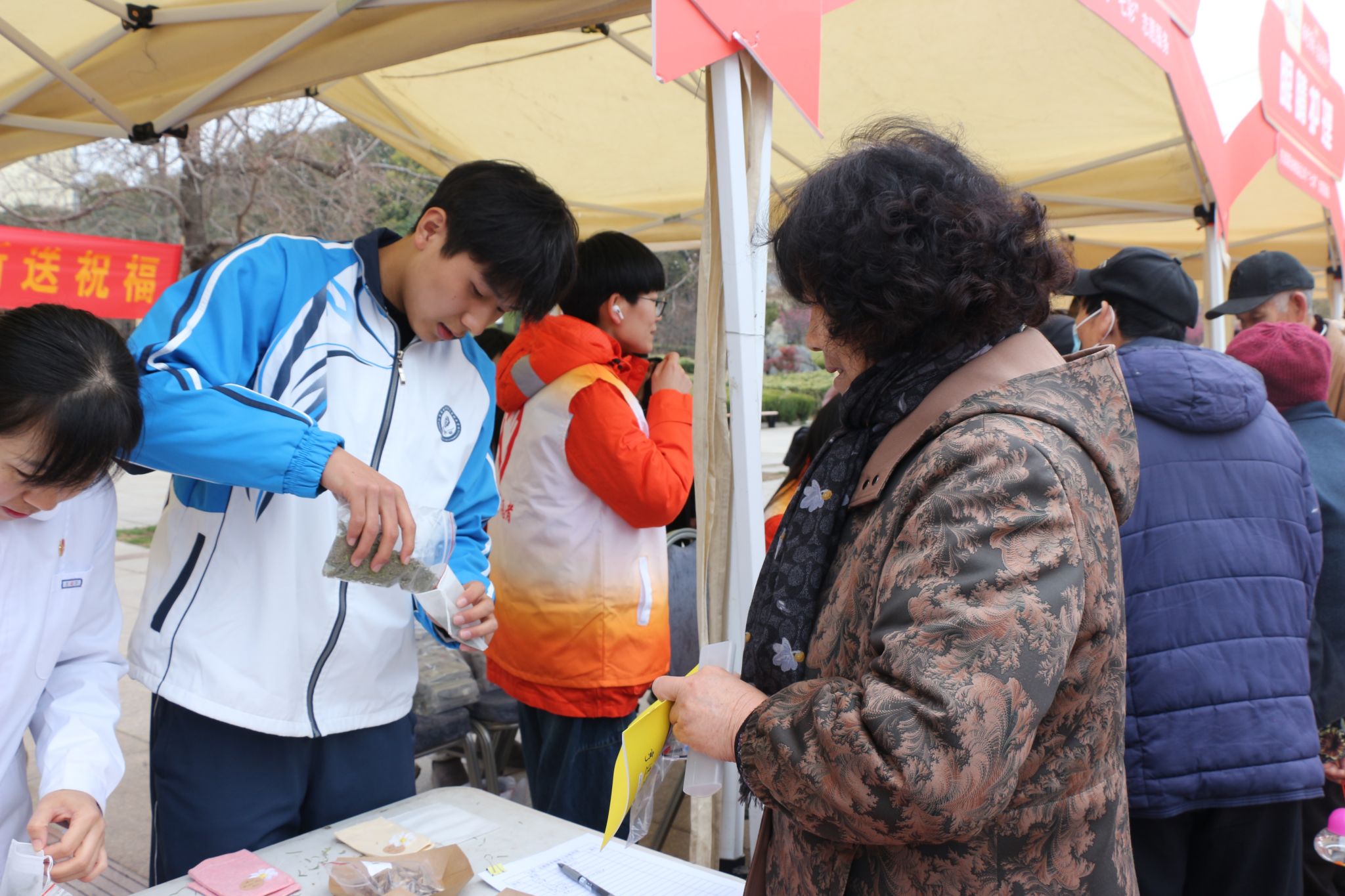 活动现场,我校师生充分发挥医药专业特色,设置健康义检与中药香包制作两个服务点位,用专业技能与暖心服务为社区居民送上健康关怀。