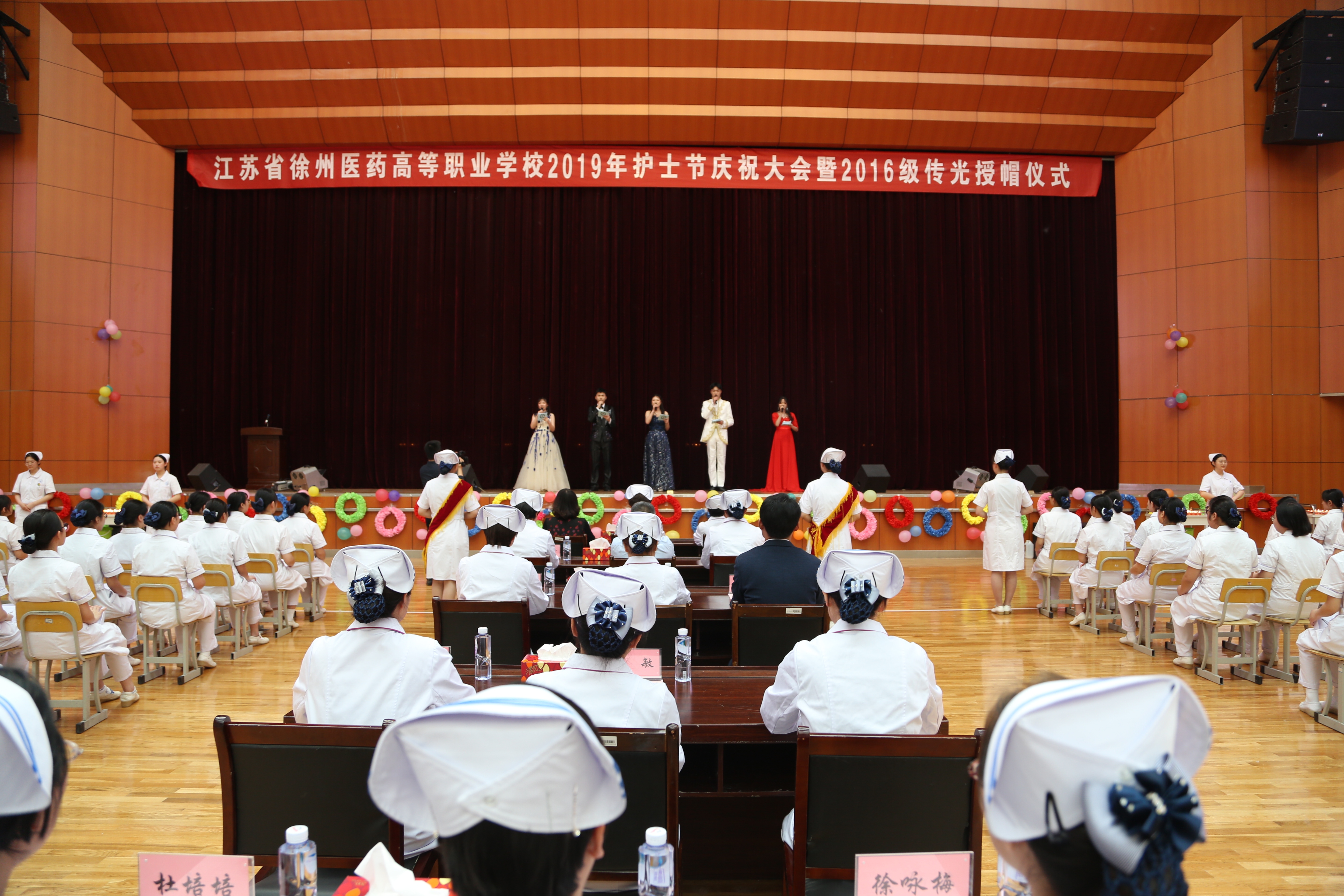 本次大会邀请了江苏省护理学会副理事长周莹、昆山市第一人民医院护理部主任龚月香、徐州市第三人民医院护理部主任刘梅、徐州市中医院护理部主任陈学玲、徐州市儿童医院护理部主任蔡盈、徐州市妇幼保健院护理部主任彭燕、徐州市东方人民医院护理部主任陶敏、徐州市口腔医院护理部主任杜青、徐州市贾汪区人民医院护理部主任黄世芳等江苏护理界9位领导嘉宾,为即将踏上临床护理实习岗位的418名护生举行了隆重的传光授帽仪式,学校党委书记高侠、副校长袁龙、副校长佟光进,护理系相关负责同志及护理系师生1000余人参加了庆祝大会。