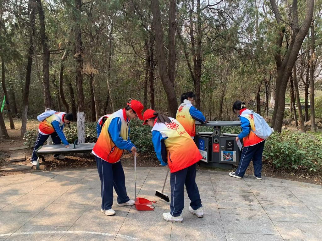 活动伊始,同学们手拿扫帚、抹布、簸箕等工具清扫垃圾、擦拭灰尘、向游客宣讲环境保护的重要意义,他们配合默契,干劲十足,展现出对保护生态、美化环境的坚定决心。
