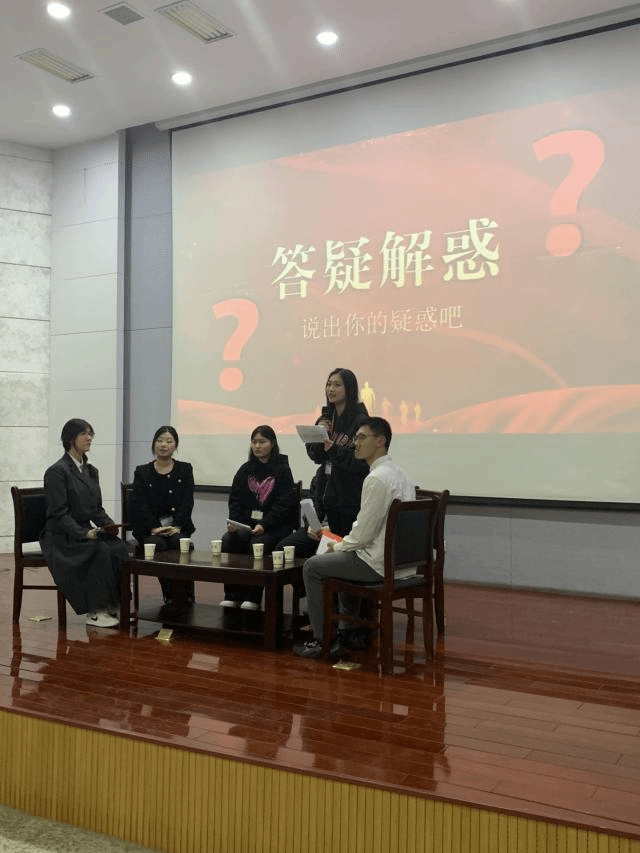 本次活动分为两个环节:学长分享实习经验、现场提问。在活动过程中,各位学长分别就实习期间可能发生的问题和要注意的细节点,以及将来就业要面临的各种疑难作出解答,分享自己实习期间所发生的种种趣事,并且针对同学们现场提出的问题提出了自己的宝贵意见。针对未来就业问题,刘纪副主任给大家讲了很多就业渠道和面试技巧让同学们受益匪浅。