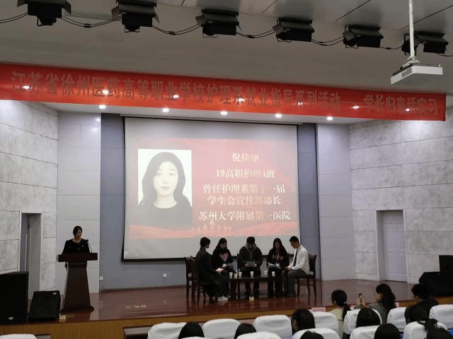 稻菽千浪,归而成杰。3月28日晚,我校护理系在报告厅成功举办了就业指导系列活动之学长归来话实习,护理系副主任刘纪、学生管理干事钟弦弦、学生管理干事于小恒出席了本次活动,活动特别邀请了实习于常熟市第一人民医院的吴洁学姐,实习于徐州医科大学附属医院的王梓名学长,实习于徐州市中心医院的孙家乐学姐以及实习于苏州大学附属第一医院的倪佳坤学姐分享实习经验,20高职康复治疗技术班、21高职护理、21高职助产及22级中高职衔接护理班学生代表参加活动。