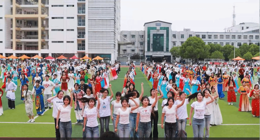 活动伊始,由500名身着民族服饰的学生带来的精彩入场表演《honey 宝贝》瞬间点燃现场气氛。