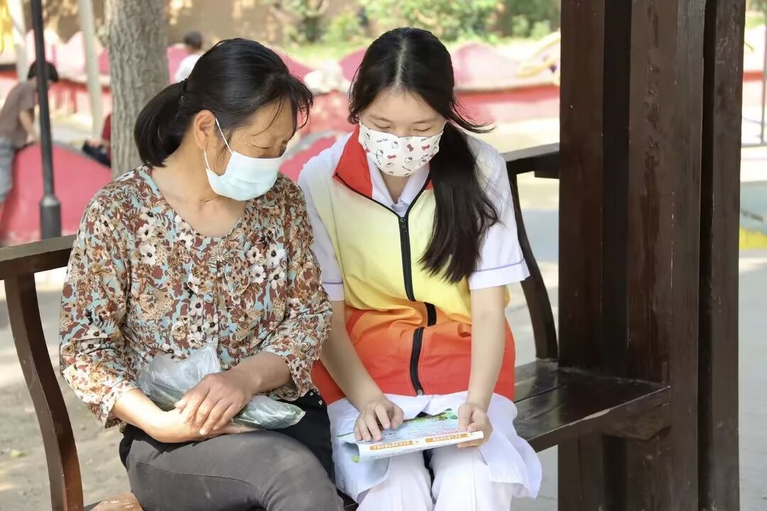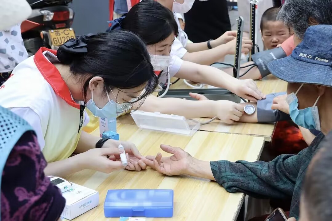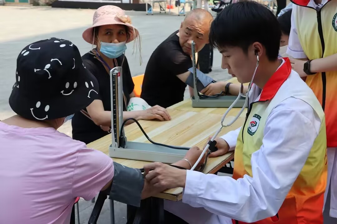 活动现场,学生志愿者们结合自身专业特点,开展了形式多样的志愿服务活动。第一小分队志愿者们为社区居民提供量血压、测血糖等健康检测服务,就居民的常见病、慢性病、急救知识进行讲解和科普,此外还对社区居民日常保健、安全用药等方面进行指导,从而提高广大人民群众安全用药意识和自身保护能力,为社区居民的健康保驾护航。