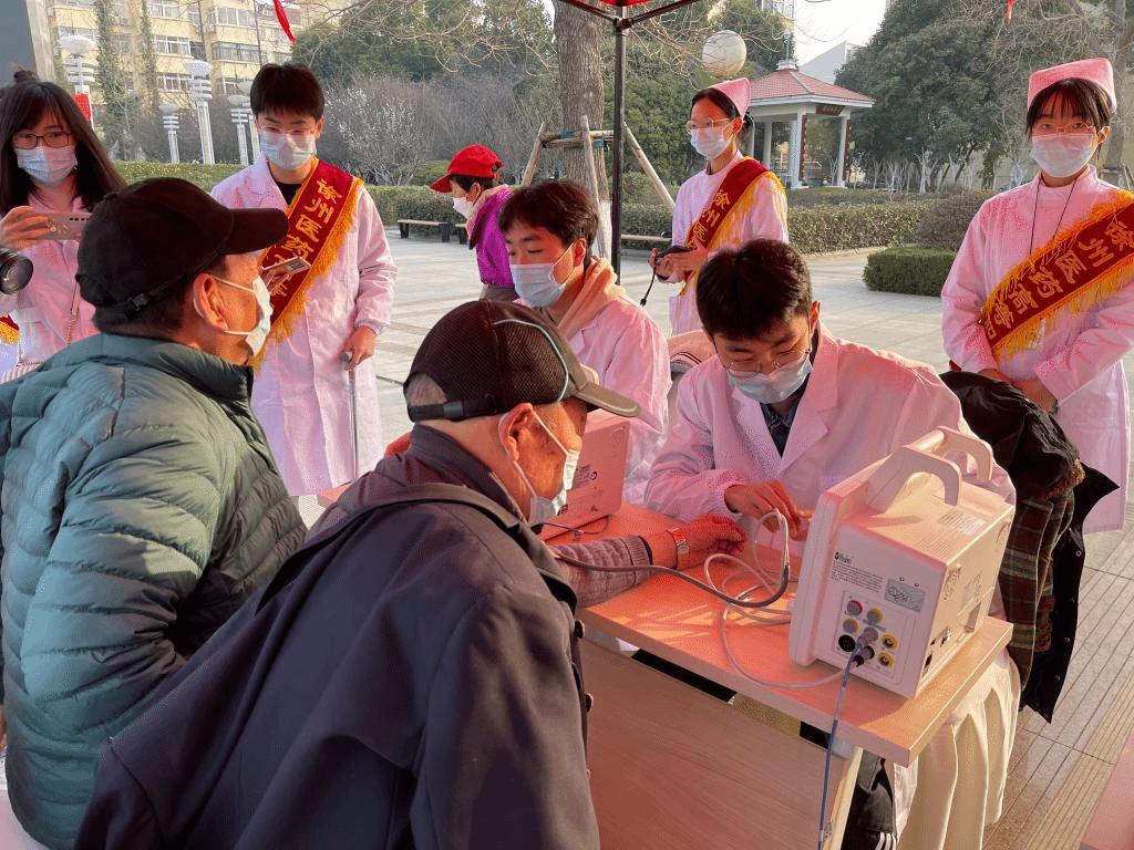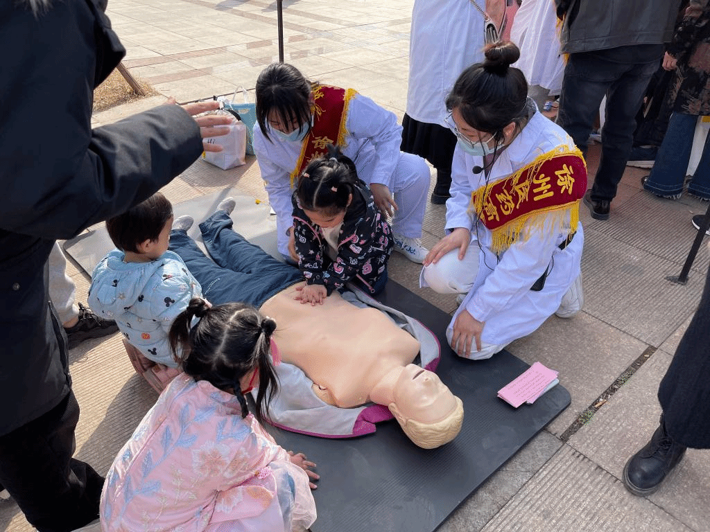 春风暖彭城,志愿进社区。3月4日,祝寻寻副主任、于小恒老师带队到管道社区开展志愿活动。志愿者们的健康义诊吸引了很多市民朋友,大爷大妈们纷纷脱去外套进行血压、血糖测量和心电监测;护理系的志愿者利用所学的专业知识,耐心细致地为市民朋友讲解耳穴埋籽的穴位和功效;专业的心肺复苏操作技术,更使围观的群众纷纷亲自上手操作体验;志愿者们亲手制作的安神香包受到广大市民的喜爱,免费香包领取处排起了长长的队伍。专业的技能操作、贴心的健康普及、精致的惠民礼品,使市民朋友对我校志愿者称赞连连。