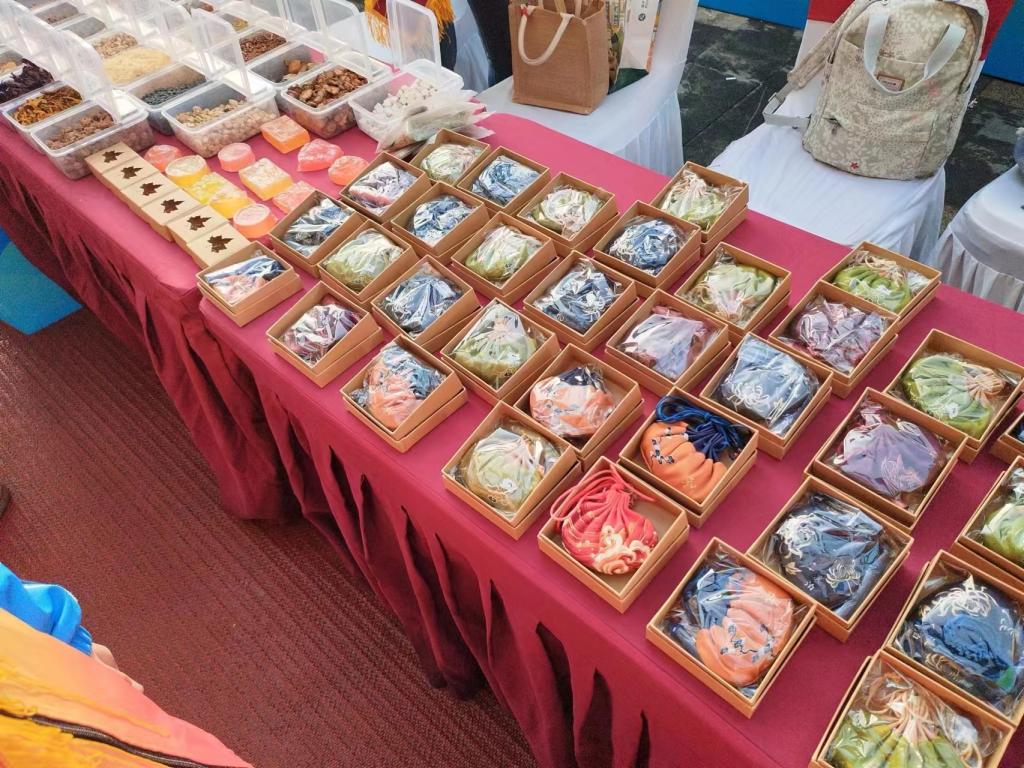 神农心,本草情。3月4日,宋樱花老师带领中草药协会亮相徐州青年助力全国文明城市创建暨志愿者文明服务月启动仪式。一盒盒中药材、一个个精美的手工艺品展现了我校浓浓的医药特色,现场展示的手工皂和香囊,由我校中草药协会志愿者们亲自采摘中药纯手工制作而成,造型精美又饱含传统文化气息。不同功效的驱蚊香囊、艾草香囊和抗流感香囊引起现场市民朋友们的兴趣,他们纷纷驻足观赏,时不时拿起药材仔细端详,闻闻气味。志愿者们向来往市民介绍各种中药材的性质和功效,教会大家识别常见中草药的方法,向他们宣传神农尝百草的故事,讲解博大精深的中医历史文化。