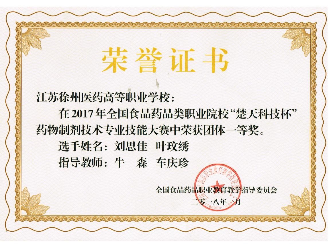 全国食品药品类职业院校技能大赛是由全国食品药品职业教育教学指导委员会主办的最高等级赛事。今年的比赛于1月12日—14日在南京莫愁中等专业学校举行。来自全国41所高职院校共80余名选手参加角逐,参赛规模空前,强手如林。大赛以“药物制剂压片”为参赛内容,包括理论考核、仿真操作考核、实际操作技能考核三个环节。由我系牛森、车庆珍老师指导的2013级药物制剂技术专业叶玟绣、刘思佳两位同学组成的代表队团结协作、沉着应战,克服了种种困难,凭借着扎实的理论知识功底和熟练标准的操作技能,发挥出良好的竞技水平,经过激烈角逐,最终脱颖而出,获得理论考核第二,仿真操作考核第一(满分),实际操作技能考核第一,总分第一的佳绩,最终获得大赛一等奖第一名。在大赛闭幕式上叶玟绣同学作为选手代表作了热情洋溢的致谢发言,博得了全场领导、师生的热烈掌声。