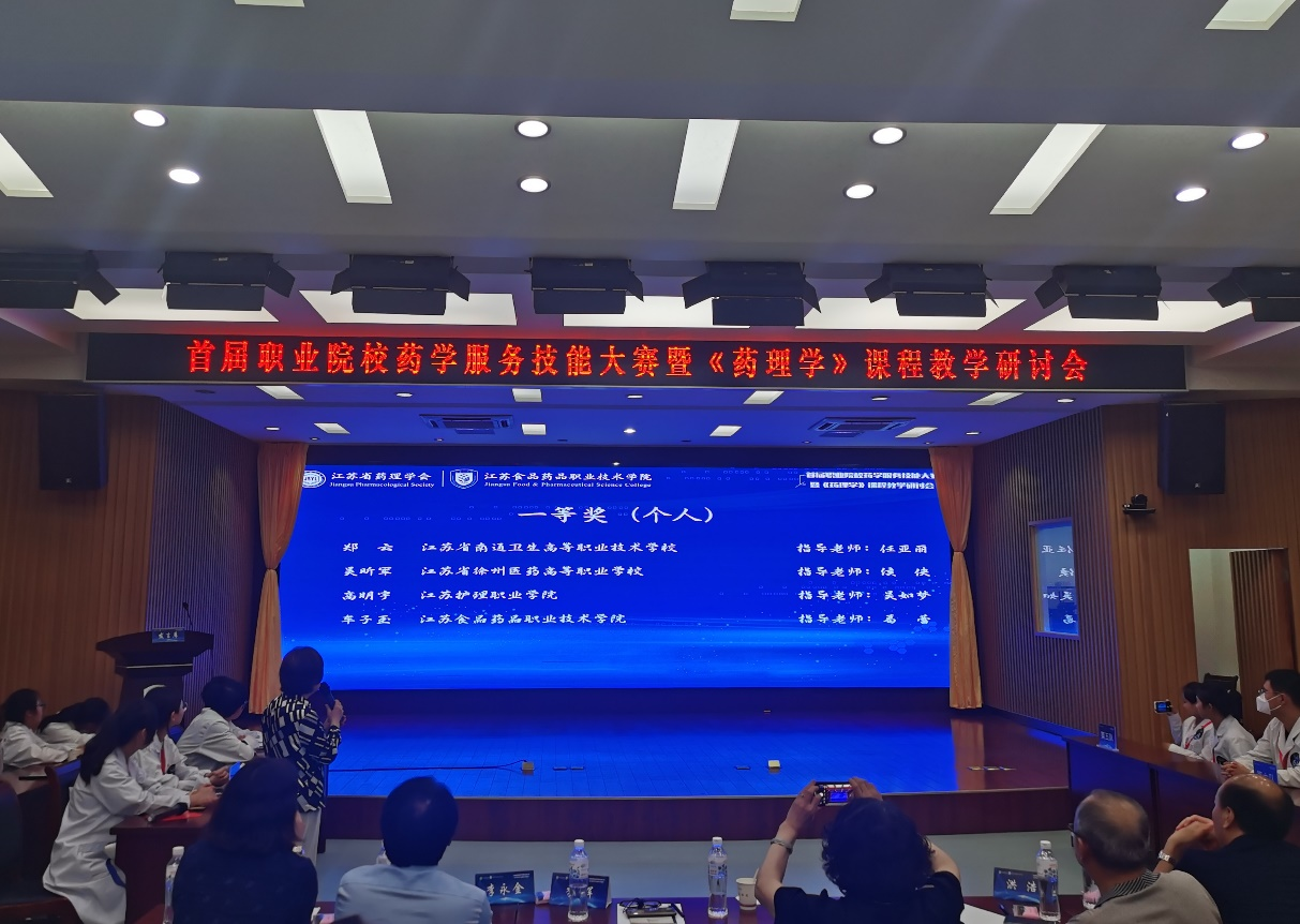 2023年6月3日,2023年江苏省药理学会首届职业院校药学服务技能大赛在江苏食品药品职业技术学院举行,我校19高职药学4班吴昕军、20高职药学2班张熙晨两名同学代表学校参赛。经过理论知识竞答、处方审核、用药交代、情景咨询等比赛,张熙晨荣获个人特等奖、吴昕军荣获个人一等奖,学校荣获唯一团体特等奖。