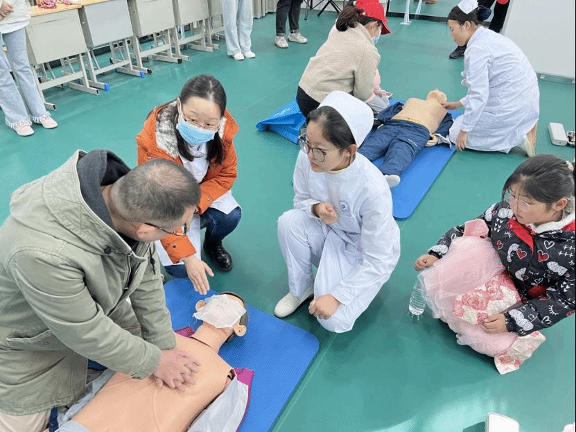 首先,参观了学校的医药长廊,了解了中医药的发展历史。在江苏省中小学职业体验中心,社区居民们深入了解了康复治疗技术的职业特色和应用领域。在徐咏梅副主任的指导下,大家还学习了心肺复苏急救技术,掌握了基本的急救技能。