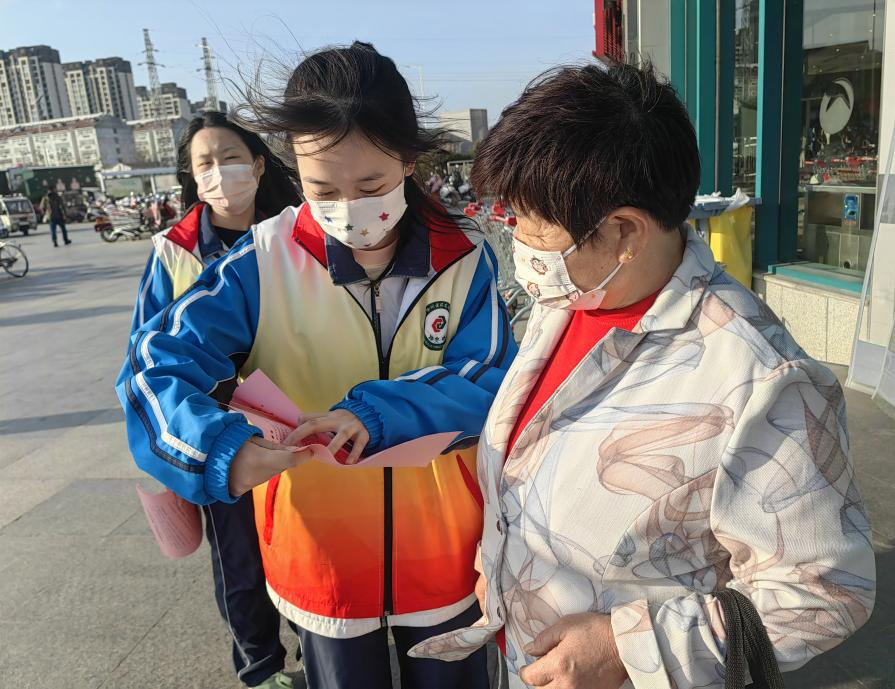 第二小分队志愿者们将印有关于中医药文化科普的宣传单发放给市民并讲解相关知识。