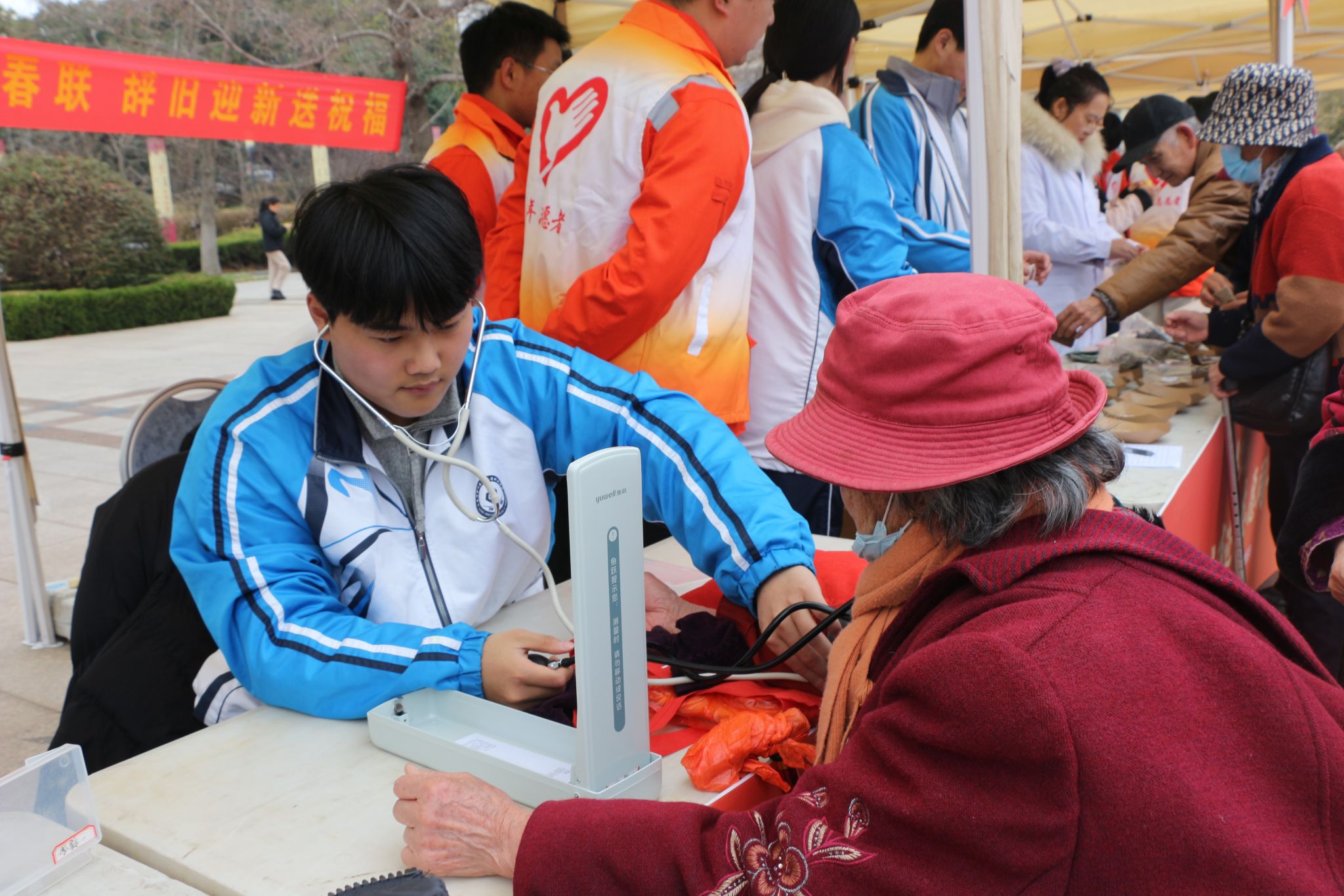 健康义检区,志愿者们在付宝慧老师的指导下,细心为居民测量血压,耐心询问身体状况,结合春季养生特点,用通俗易懂的语言讲解慢病预防、科学饮食、合理作息等健康知识,引导居民树立健康生活理念,把专业健康服务送到居民“家门口”。